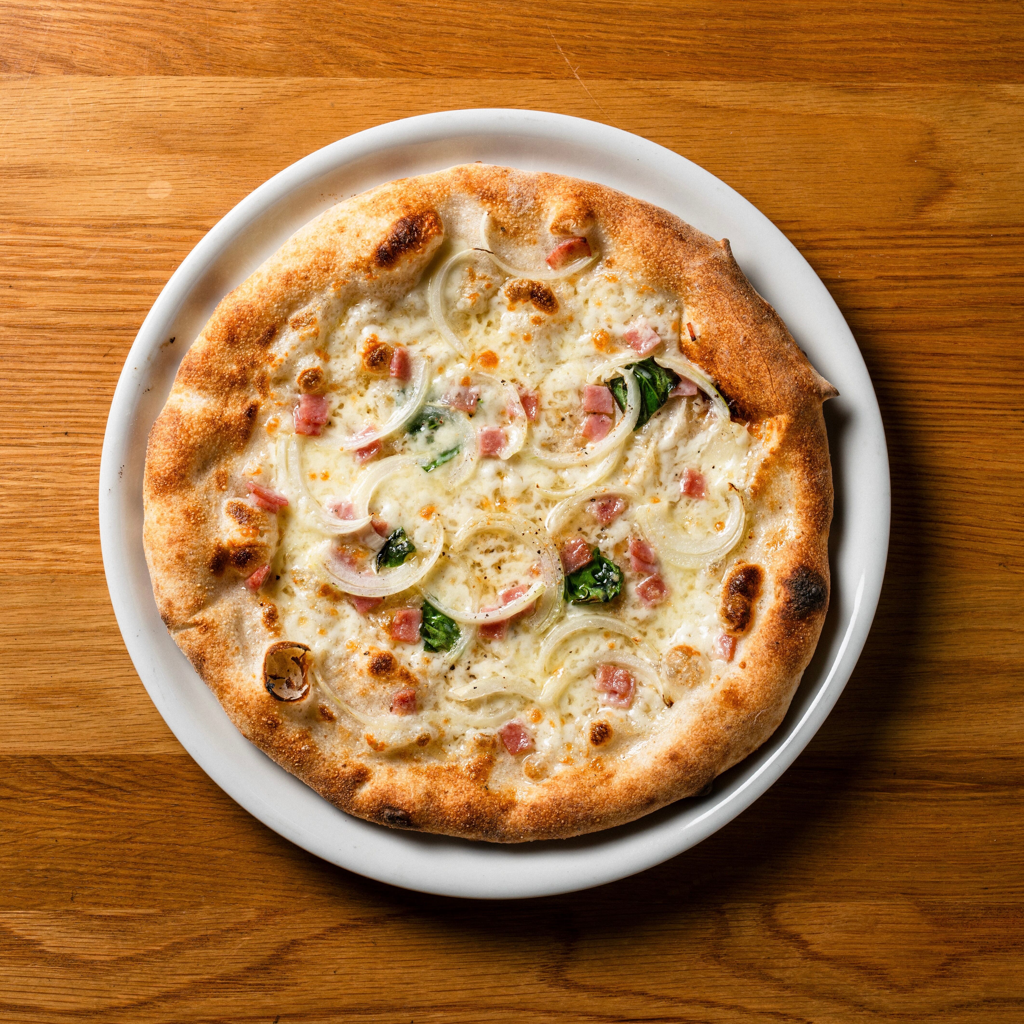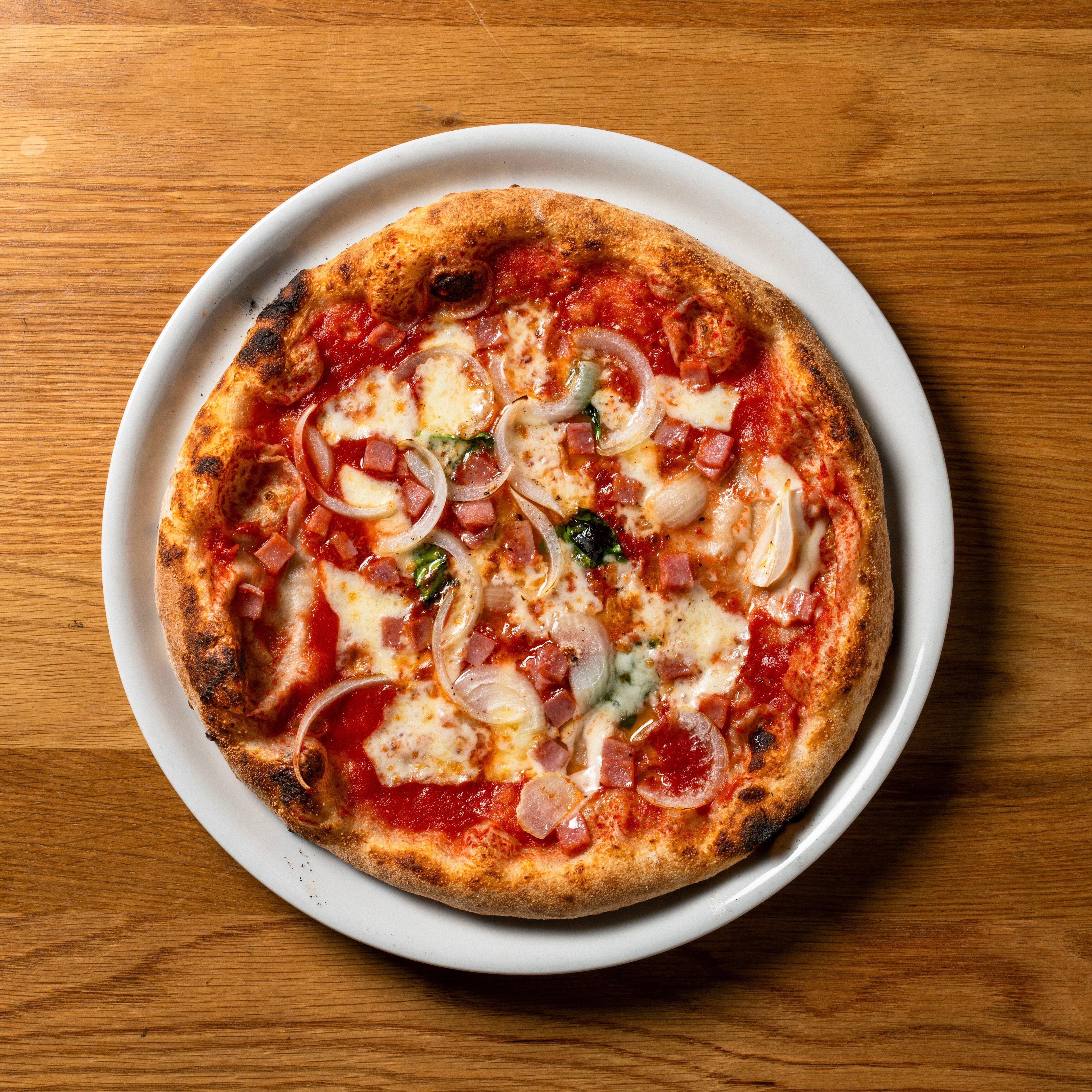 タマネギを使っており、たまねぎの甘味とハムの旨みを感じられる1枚。
